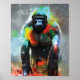 Un gorille puissant dans un tableau abstrait audacieux. Cette oeuvre d'art est sûre de faire une déclaration avec ses couleurs fortes et son caractère fort!