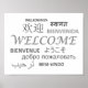Ceci est une affiche de bienvenue avec "bienvenue" en noir et blanc dans plusieurs langues du monde entier.