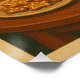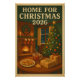 Design d'affiche de Noël chaleureux et cosy, style d'illustration rétro des années 1950, salon familial décoré pour les vacances, cheminée brillante, arbre de Noël décoré avec des ornements et des lumières