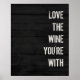 Brève description du design : Le design "Love the wine you're with" présente des vignes légèrement au-dessus d'un arrière - plan de bois rustique.
