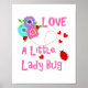 Aimez un petit design lady bug doux adorable pour les petits enfants avec des fleurs fantaisistes, des cœurs d'amour rouges et des coccinelles.