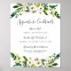 Les clients Invitations peuvent profiter d'une libation préférée avec notre charmant panneau de bar mariage. Signal 11x14 avec "cocktails signature" en écriture calligraphie. Personnalisez avec vos boissons spéciales avec six champs de texte personnalisés. Ajouté chic à votre configuration de bar mariage, ce panneau est orné d'aquarelle de verdure botanique et de fleurs blanches qui correspondent à notre collection de mariages de fleurs d'Albâtre.