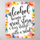 Poster Alcool Mariage Floral Aquarelle 8x10