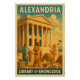 Affiche de voyage rétro de l'Egypte ancienne, avec la Bibliothèque d'Alexandrie dans un style grand et majestueux