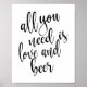 Un élégant panneau mariage de pointe, avec le texte "Tout ce dont vous avez besoin est l'amour et la bière" dans une police de script extroversée, la texture de la brosse ajoute une sensation spontanée et ludique. La couleur arrière - plan peut être personnalisée selon vos besoins et préférences, s'il vous plaît contactez-moi si vous avez une demande spéciale.