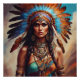 Une Américaine d'origine à l'expression sérieuse porte une coiffure vibrante ornée de plumes colorées. Sa tenue est complétée par des colliers superposés et crée un look étonnant et complexe.