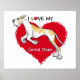 Faites savoir à chacun que vous AIMEZ votre Grande Danse (oreilles rognées) avec ce grand coeur rouge et la grue qui saute avec le texte "I Love My Great Dane" de Danes-R-Us.