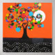 Arbre coloré avec coeur d'amour dans le tronc, avec pleine lune et art pointillé