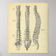 Impression vintage de l'anatomie de la colonne vertébrale des 3 vues de la colonne vertébrale humaine.