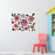 Fleurs et feuilles délicats faits avec des formes aquarelles et des détails encrés. Palette rose et verte.