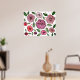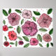 Poster Aquarelle et fleurs d'encre - rose et vert
