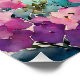 "Arches Au Bord De La Mer". Une vue idyllique sur une belle baie, avec un seul bateau. Une petite plage de sable est encadrée par une belle mer azurée et des fleurs roses et violettes.