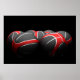 Groupe isolé de 7 boules de basket avec couleur rouge, noir et argent sur un arrière - plan noir avec une faible lumière
