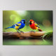 L'affiche est présentée avec une photo de deux beaux oiseaux colorés. Customisez cet objet ou achetez tel quel.