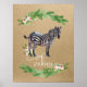 Jolie impression zèbre, avec un fond marron kraft, de la verdure aquarelle & des fleurs roses, et du texte calligraphié blanc. *Œuvre par GraphicBox & WhiteHeartDesign