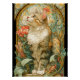 Un chaton majestueux à la fourrure luxuriante et détaillée se dresse gracieusement au milieu d'un agencement orné de fleurs et de vignes tourbillonnantes, le tout encadré dans un design complexe de style Art Nouveau. Le chat regarde vers le haut avec une sagesse sereine, baigné de lumière dorée douce, tandis que l'arrière - plan fleurit avec des tons pastel et terre riches, créant un sentiment de beauté intemporelle et d'élégance naturelle.
