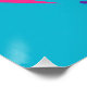 Le mot semble jaillir d’un nuage graphique rose fuchsia, comme une bulle pop. L’ensemble est inspiré de l’esthétique de Memphis Milano : ambiance rebelle, ludique, résolument anti-conventionnelle. Une ode à l’art comme explosion joyeuse.