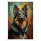 Montrez la force et l'élégance du berger allemand avec cette affiche de peinture à l'huile vibrante. Le visage frappant du berger allemand, peint avec des touches expressives et des textures dynamiques, crée une puissante pièce de déclaration pour n'importe quelle pièce. Pièce murale idéale pour les amoureux de les chiens, décoration à la maison ou espaces de bureau. Une oeuvre artistique intemporelle signée par ZR21Designs.