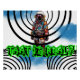 Astro art, aspirais ao redor, nuvens azuis esfumaçadas representando que o personagem em sí está no céu.