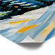 Cette oeuvre d’art très vivante capture un astronaute parfaitement adapté au milieu d’un paysage enneigé avec des arbres à feuillage persistant, dressé contre un ciel étoilé tourbillonnant qui rappelle la nuit étoilée de Van Gogh. Le costume de l’astronaute est détaillé avec des patchs de drapeau américain et des fils de communication rouges, reflétant un thème d’exploration qui mêle voyage spatial et art classique.