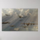 Les bombardiers britanniques Lancaster surplombent la Manche et se dirigent vers un raid nocturne sur l'Allemagne. Escorté par P-51D Mustangs