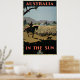 Cette affiche publicitaire vintage est destinée aux voyages en Australie. Il montre un homme à cheval élevant des moutons avec son chien.