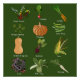 Illustration unique avec douze légumes d'automne, idéal pour les jardiniers, les agriculteurs et tous ceux qui aiment l'automne! Sur le design sont un citrouille, blette suisse, choy bok, carotte, radis, choy bok, parsnip, pois neigeux, courge butternut, maïs, betterave, pousses de brosse et kale. Fait un grand cadeau de jardinage ou le thème de chute.