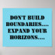 Poster avec un message inspirant, "Ne construisez pas de frontières, élargissez vos horizons."