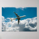 Photo d'un grand avion commercial blanc qui monte dans le ciel nuageux