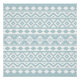 Design influencé par des motifs de style aztèque dans une interprétation numérique vectorielle moderne en blanc et bleu oeuf canard.