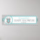 Empreinte de chevron chic avec contraste d'aqua ; sauteur à points Polka avec cravate et ruban 3D et bannière de baby shower de garçon arc.