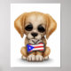 Poster Balise Chiot mignon avec Drapeau Portoricain, Blan
