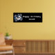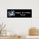 Bannière de fête d'anniversaire crâne et os à carreaux bleus. Personnalisez avec n'importe quel texte.