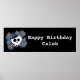 Poster Bannière de fête d'anniversaire crâne et os à carr