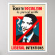 Tu sais ça en disant sur la route vers ? Eh bien, voici la version parodique de la politique mise à jour : "LA ROUTE VERS LE SOCIALISME EST PAVÉE PAR LES INTENTIONS LIBÉRALES DE BARACK OBAMA". Faites passer le mot sur une affiche de Barack Obama.