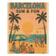 Apportez les vibes ensoleillées de Barcelone dans votre espace avec cette affiche de voyage rétro vibrante. Inspiré par les plages dorées de Barceloneta au coucher du soleil, ce design comprend des palmiers, des parasols et la lumière chaude de la Méditerranée. Avec ses tons pastel doux et sa typographie de style nostalgique des années 1980, il capture l'esprit ludique et insouciant d'un été espagnol. Idéal pour les amateurs de plage, les voyageurs et les amateurs de design rétro à la recherche d'un brin de soleil méditerranéen.