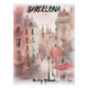 Este hermoso diseño en acuarela de tonos pastel captura la esencia de Barcelona, con una vista encantadora de la Sagrada Familia al fondo. Las calles empedradas y los edificios históricos se mezclan en una paleta de colores suaves que transmiten la serenidad y el encanto de la ciudad. Ideal para quienes aman viajar, la arquitectura y el arte contemporáneo. Este recuerdo único es perfecto para decorar cualquier espacio y traer un pedazo de Barcelona a tu hogar.