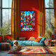 Explora la colorida arquitectura de Barcelona con este diseño que mezcla cubismo y surrealismo. Capturando el paisaje urbano y la esencia artística de la ciudad de Gaudí, este diseño es perfecto para viajeros y amantes del arte contemporáneo. Un recuerdo único para decorar espacios modernos.