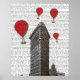 Poster Bâtiment en fer plat et ballons rouges à air chaud