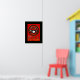 Cool de batteur de rock classique imprimé pour décorer les murs de la salle des musiciens - la couleur arrière - plan rouge peut être changée ("personnaliser le bouton")