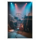 Capture the energy of your music! This vibrant image of a studio with drums, a amplifier and dramatic lighting is perfect for inspiring creativity and adding a musical touch to your space. Ideal for decorating bedrooms or workspaces.