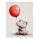 Poster Bébé Hippopotame avec Ballon Rouge