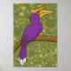 Un barbecue caricatural Rhinoceros Hornbill qui se dresse dans la jungle Polkadot des années 1950.