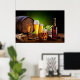 Poster Beer barrel with beer glasses on a wooden table