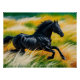Poster Belle galopante de Cheval Noir dans un champ vibra