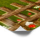 Une affiche avec une belle image d'une scène naturelle : Un oiseau assis sur une clôture patinée, des fleurs sauvages poussant autour de la clôture, un fermier sur un tracteur, travaillant ses terres, des arbres avec des feuilles, et des terres agricoles de différentes couleurs. L'arrière - plan, l'image et le texte peuvent être customisés. Oeuvre originale de W.B.
