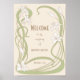 Une affiche de style Art nouveau pour accueillir vos invités mariages, avec des nénuphars blancs dessinés à la main avec des feuilles verts, formant un cadre fluide organique autour de votre texte personnalisé, sur un arrière - plan beige.