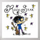 La petite rock star adorera ce design avec une star rock garçon aux cheveux noirs avec guitare entourée d'étoiles bleues et jaunes et texte cool qui dit Rock Star! T-shirts Rock Star, costumes, couvertures, bibs, tasses, sacs, porte - clés, mousepades, serpents, coussins, horloges murales, et bien plus encore.