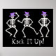 Ces squelettes dansants font une grande affiche d'Halloween. Amusant à accrocher sur la porte ou les murs pour les fêtes ou les tours ou les traiteurs. Trois squelettes dansent sur un arrière - plan noir avec les mots personnalisables "Kick it Up". Vous pouvez changer à votre propre dicton ou nom. L'art original peint à la main présente des squelettes dansants avec chapeau dessus violet sur leurs crânes et est dans les couleurs noir et blanc avec violet. Recherchez mes autres produits avec cet art pour les produits goulish pour Halloween, y compris les invitations, cartes de voeux, tee - shirt, coques électroniques et plus. Entièrement personnalisable pour la personnalisation. L'art original est de Phyllis Dobbs qui vous souhaite une Halloween joyeuse et lugubre.