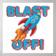 Notre design Blast Off est un design génial pour les enfants de tous âges qui aiment l'espace et les navires de roquettes, dispose d'un navire de roquette bleu et rouge avec des gaz d'échappement flamboyants et texte qui dit Blast Off! Blast Off rocket ship T-shirts, bibs, couvertures, cartes, autocollants, tasses, sacs, coussins, horloges murales, et bien plus encore!